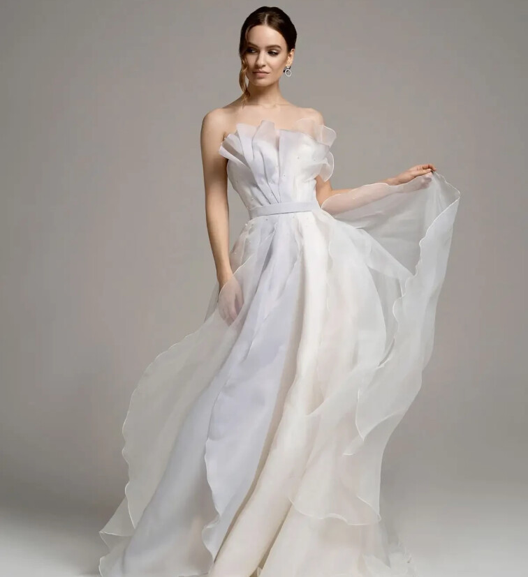 Unique design looks from the New Horizons Collection are as versatile as the vast sky: it is bright and unpredictable at dawn, calm and pastel during the day, in the evening it amazes with a riot of colors of sunset, and at night with the mysterious starlight. The collection of wedding dresses also admires with its diversity: spectacular laconic silhouettes are filled with stylish accent details, such as rich embroidery, airy flounces and a combination of stunning textures of fabrics, such as satin, sateen, organza.
