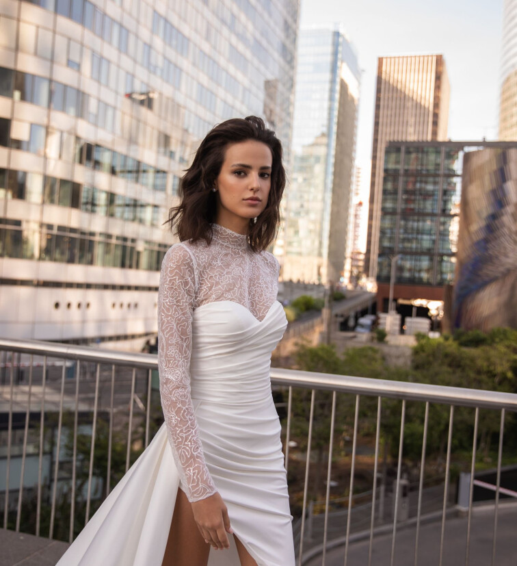 The location for the shooting of the lookbook was the Parisian La Défense — a modern part of the most romantic city. And not by chance, because in the "Passion of the City" collection, designers have perfectly combined classic styles that brides adore so much with current fashion solutions: