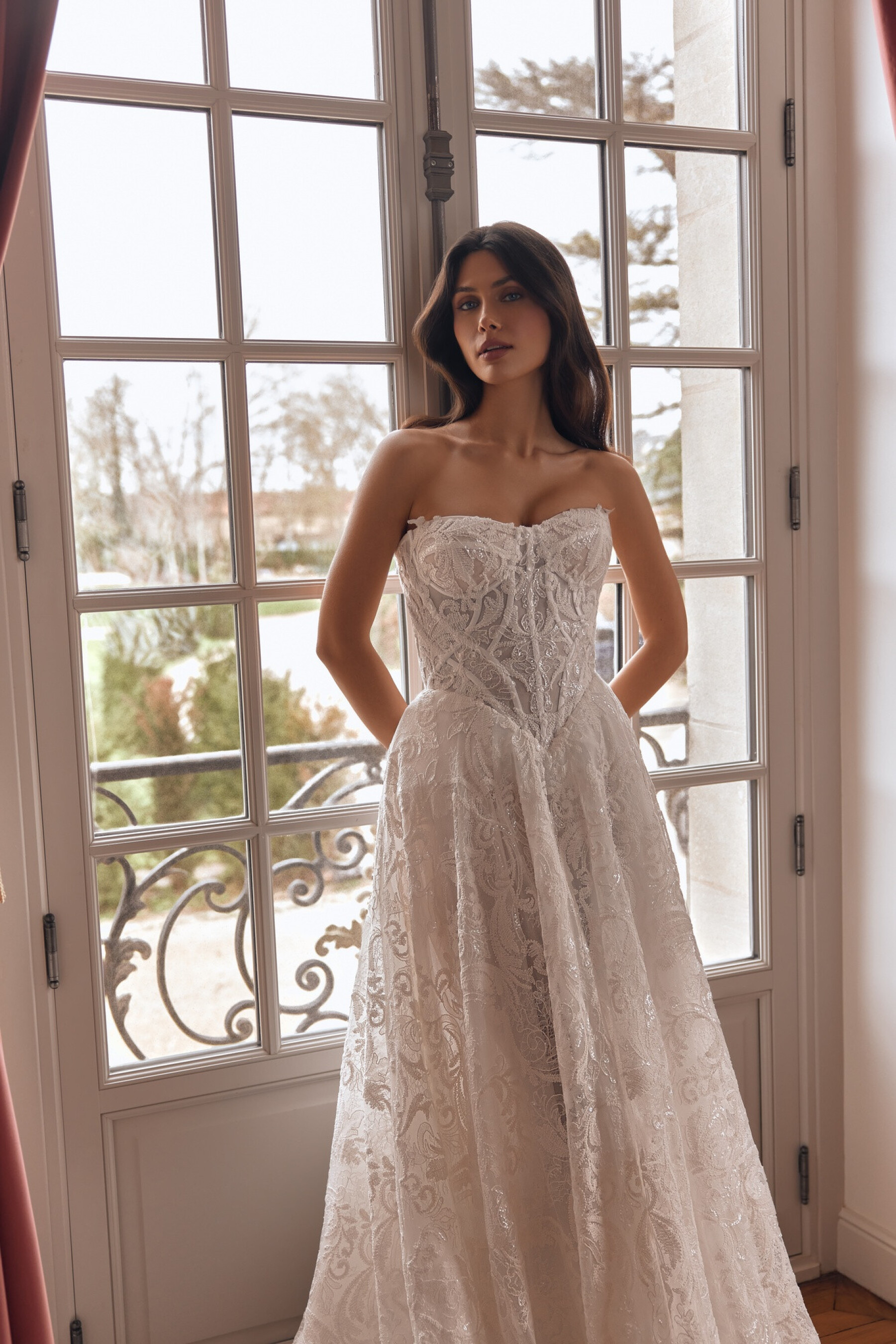 An A-line Ivory gown emphasizing femininity and graceful movement.