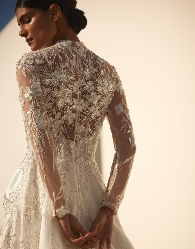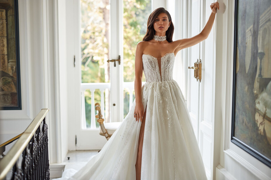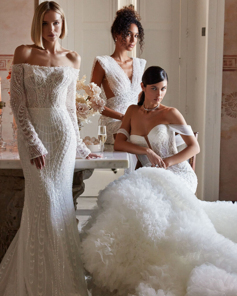 Triumphale Designkleider. Hier ist jeder Look ein bewundernswertes Musterwerk der Hochzeitsmode, das Sie in die Welt des Reichtums und des Luxus eintaucht. Sie werden von denen ausgewählt, die sich viel gönnen können.