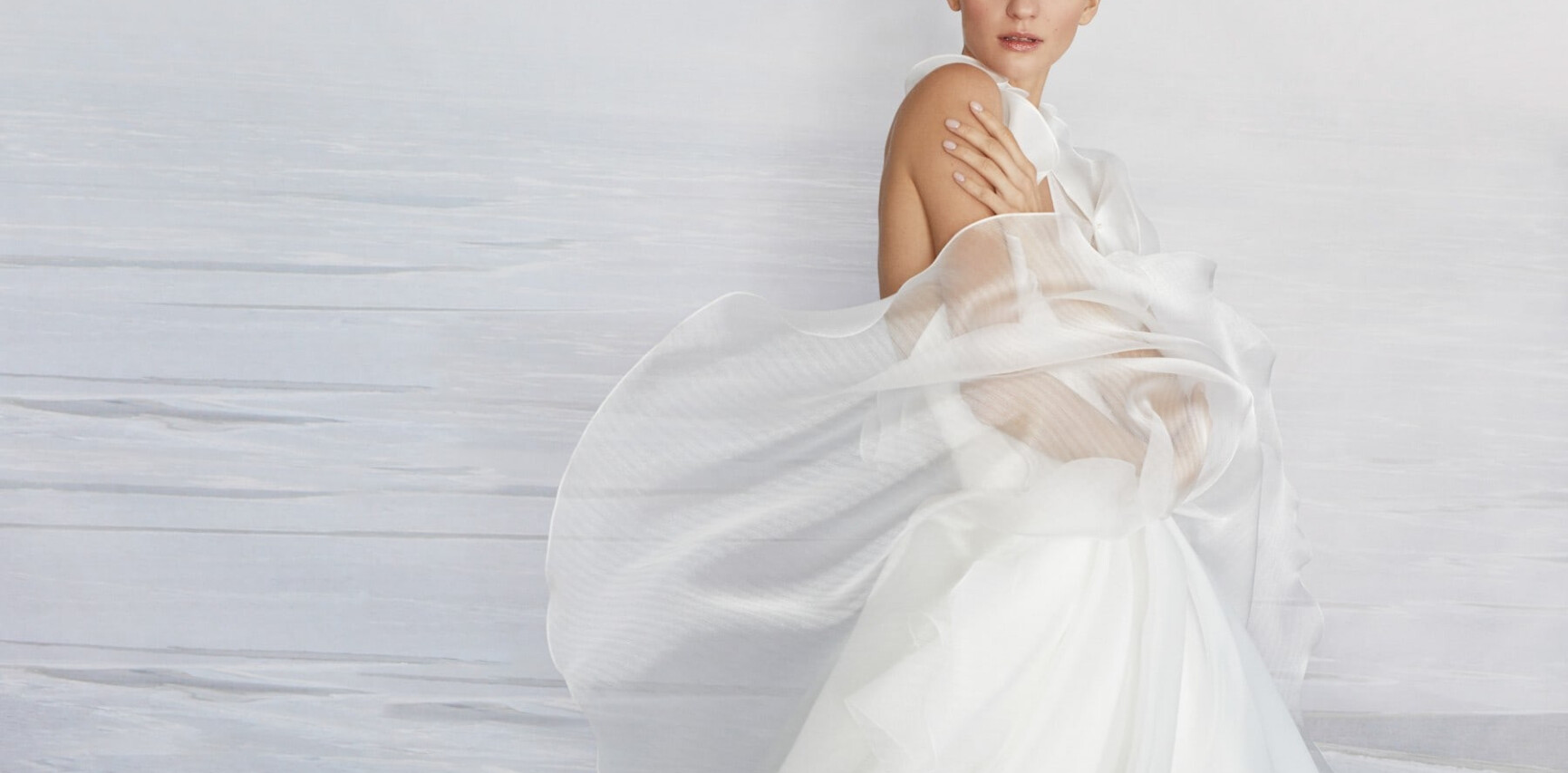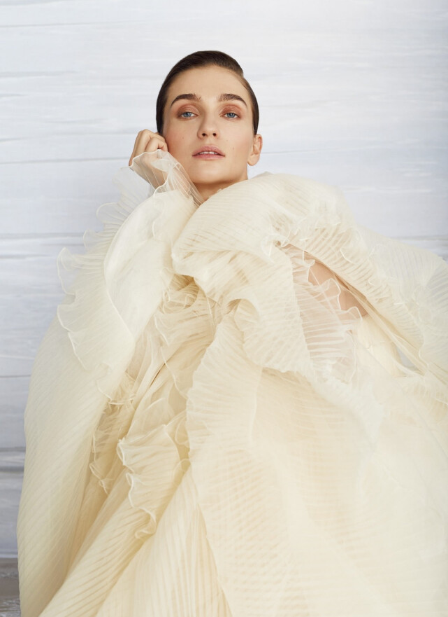 Лискучі шовк, креп і сатин поєднуються з практично невагомим фатином, органзою і тонким мереживом. Бездоганна посадка виробів підкреслює фігуру нареченої, але не сковує рухів, а драпірування, багатошаровість і волани додають колекції повітря, ритму і спонтанності.